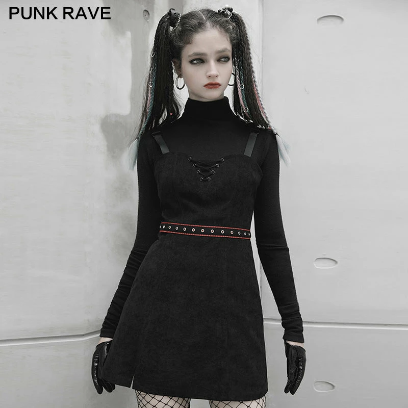 4. Waist has a combination of eyelet ribbon decoration, increase the style of punk sense